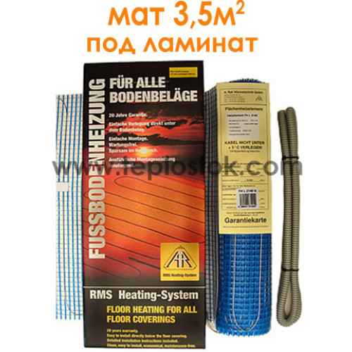Нагревательный мат Arnold Rak FHL 2135 шириной 50см, и длинной 7м рассчитан на площадь 3,5м2 подогрева пола. Сетка, на которой устроен кабель, имеет клеевую основу, это значительно облегчает монтаж. Мат укладывается на подложку для ламината. Для того чтобы повернуть мат в другую сторону, необходимо разрезать сетку не задевая кабель. После того как уложена вся площадь обогрева, нужно вывести датчик температуры посредине нагревательных жил кабеля. После можно класть ламинат и пользоваться теплым полом. Для управления системой используйте терморегулятор,