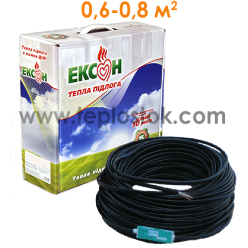 Тепла підлога Ексон-Еліт Е-16,5 120Вт - одножильний нагрівальний кабель для комфортного підігріву підлоги, а також основного обігріву приміщень через підлогу з підігрівом. Довжина даної секції дозволяє змонтувати кабель на 0,6 -0,8м2  площі обігріву (крок укладання 10-12,5 см). Даний комплект складається з нагрівального кабелю довжиною 7,3 м, а також холодних кінців для підключення, довжиною 2,5 м з кожного боку. З'єднання нагрівального дроту та монтажних кінців виконано за допомогою заводських з'єднувальних муфт. Захисний екран, що складається з плетеного мідного дроту, частково гасить електромагнітні випромінювання, а також виконує роль заземлювача (підключається до контуру заземлення будівлі). Стійка до ультрафіолетового випромінювання зовнішня ізоляція, дозволяє використовувати нагрівальний кабель Ексон-Еліт в системах сніготанення дахів, жолобів та водостічних труб.