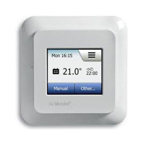 Термостат OCD5-1999 – сенсорный программируемый терморегулятор OJ Microline. Предназначен для автоматического управления нагревательными электрическими теплыми полами, а также конвекторами, УФ-панелями или любыми прочими электрообогревателями. Имеет два датчика измерения температуры, первый – выносной, устанавливается в конструкцию пола, где находится наш электрический нагревательный кабель, по середине между двух проложенных нитей. И второй – встроенный датчик воздуха, благодаря ему температура воздуха в заданном помещении постоянно придерживается установленному Вами градусу. В связи с этим, терморегулятор может применятся к любым отопительным приборам в комнате, а не только к теплому полу.